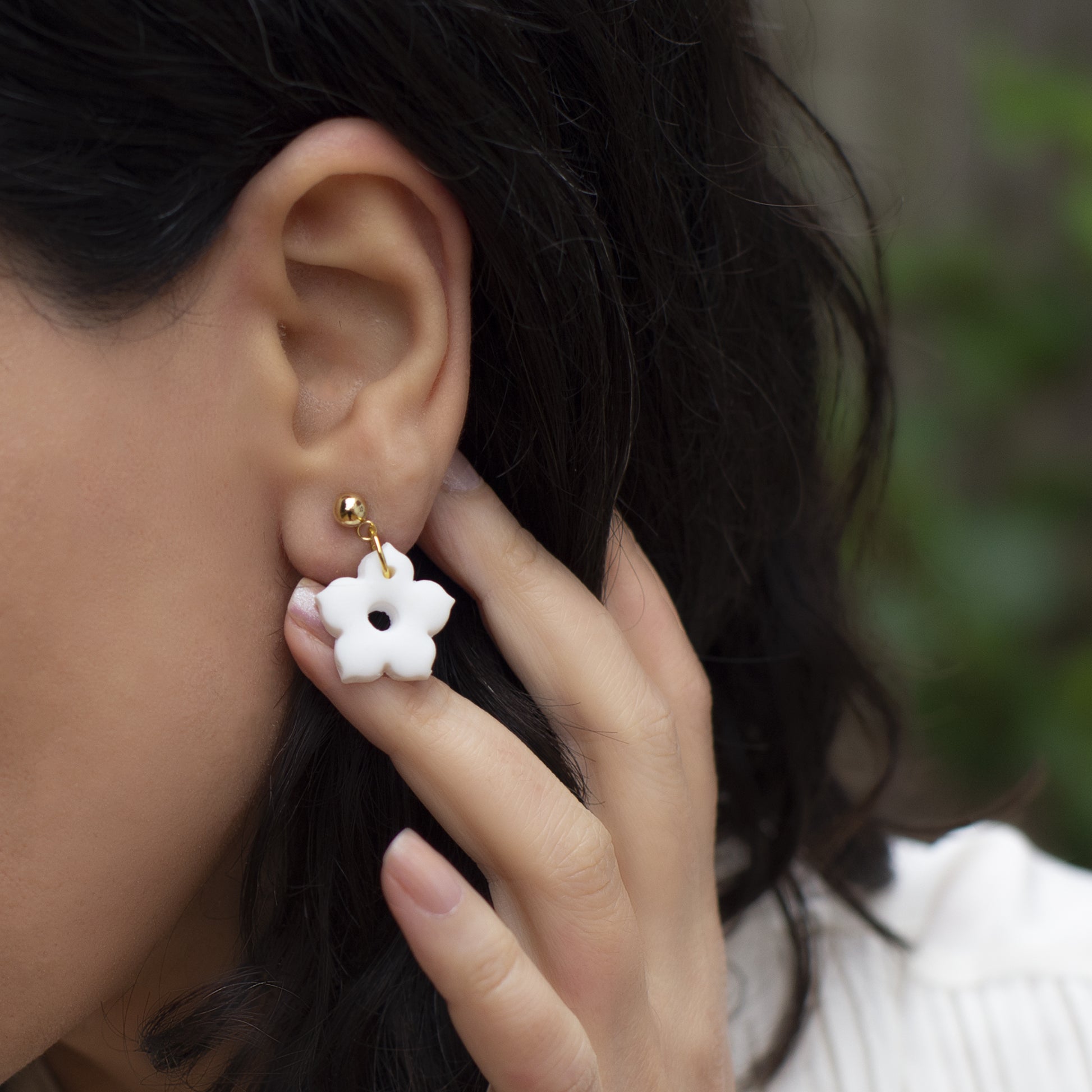 The earrings are made from polymer clay and are hypoallergenic, measuring 2 centimetres in length and width. The greeting card is A6 - 105 x 148 mm and is blank inside. It comes with a 230 gsm card inside a kraft envelope.