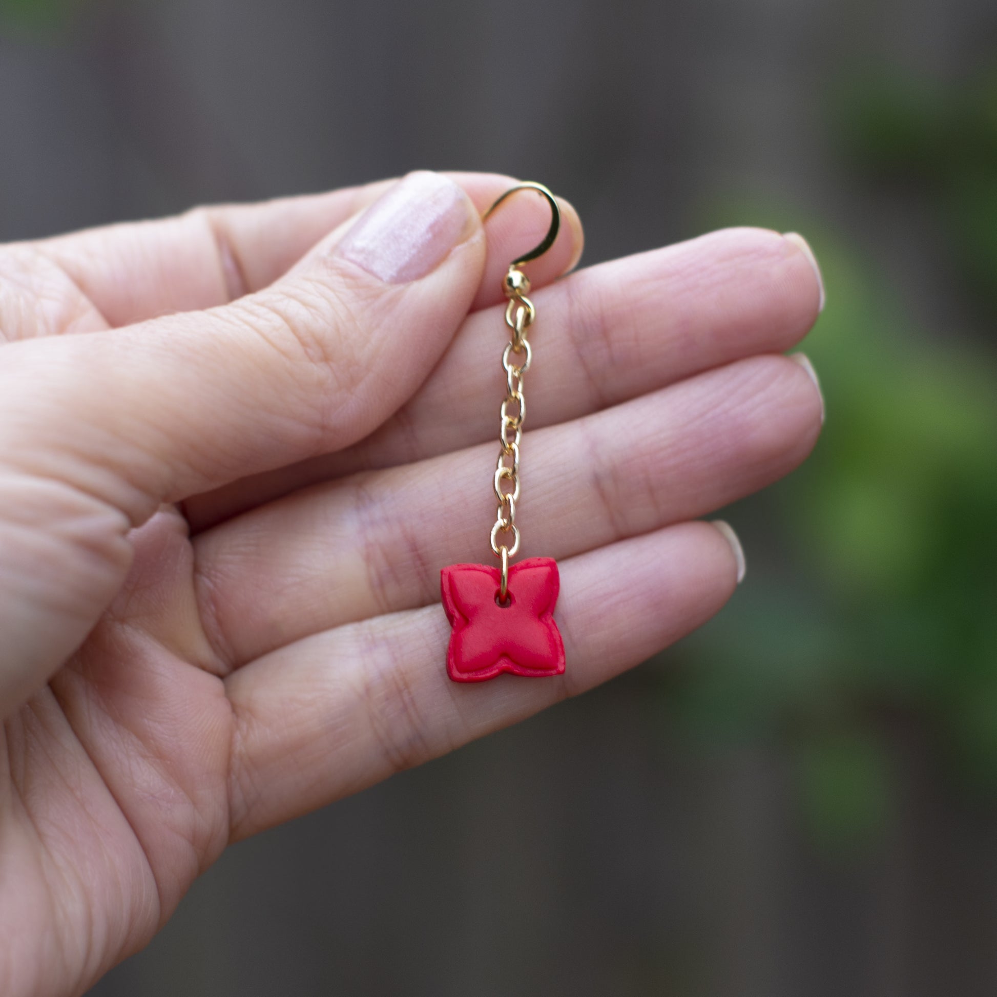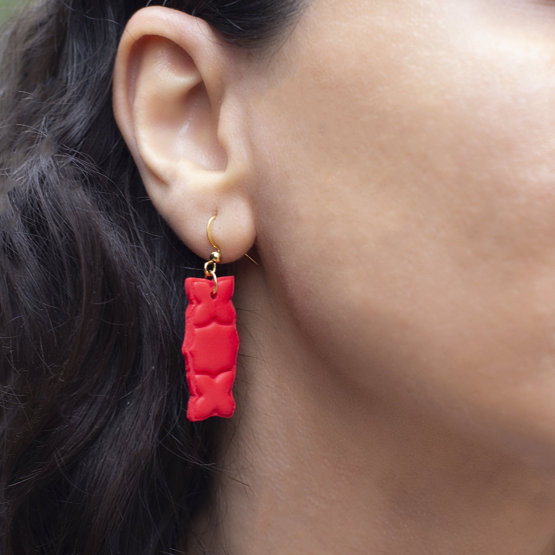 These red earrings are lightweight and nickel free made from polymer clay. The earrings closure are push back. And each earring is individually handcrafted from polymer clay, ensuring that each piece is one-of-a-kind, which may bring slight variations in colour, shape, size, etc. from the items pictured.